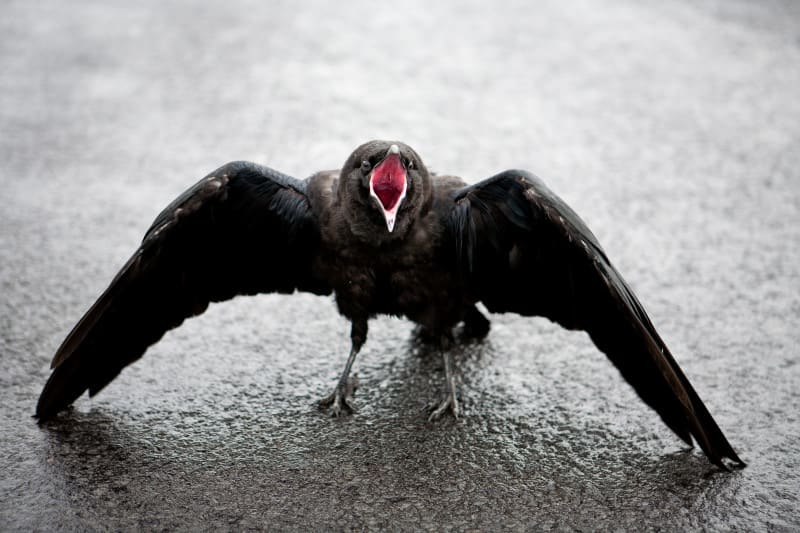 The raven is a much bigger cousin of the crow. They’re in the same genus (Corvus) so they’re closely related and share a lot of characteristics.